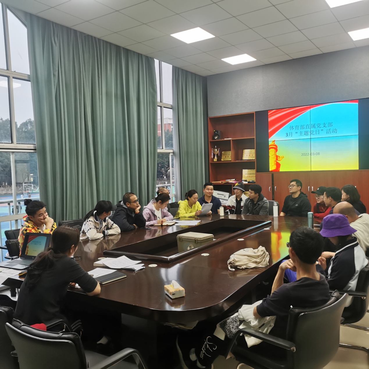 2022年3月10日上午,体育部全体党员在会议室举行了3月“主题党日”活动。