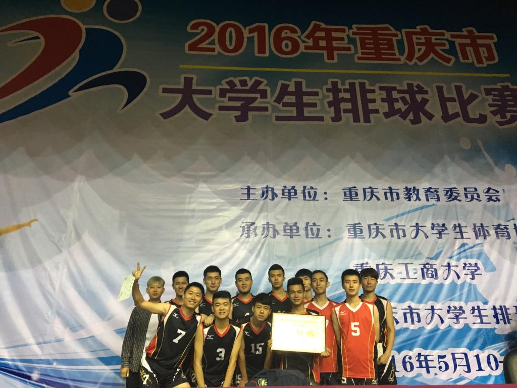 5月10日至14日,2016年重庆市大学生排球比赛在重庆工商大学室内体育馆隆重举行。我校派出男子,女子排球队两支队伍参加此次比赛。在本次比赛中,男子排球队获男子甲组第七名和体育道德风尚奖,女子排球队获女子甲组第四名。其中,来自新闻传播学院14级袁翔宇(男队),商务英语14级陈胤全(男队),英语学院13级梁玲莉(女队),英语学院13级袁玉芳(女队)被评为体育道德风尚先进个人。
