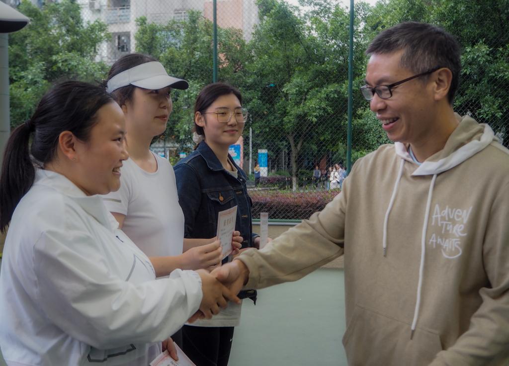 在5月15日下午的比赛中,卢波副校长、教师发展中心胡登全主任、体育部杨焱主任、体育部张勇副主任、原图书馆何天云馆长、原工会吴名江主席来到球场观看比赛为同学们加油助威,并在赛后为各项目获得前六名的同学颁奖。卢波副校长在赛后和同学们交流中说到“希望同学们在大学的学习生活中爱上两个地方:一个是图书馆,另一个是运动场,并鼓励同学们坚持网球、享受网球、以后工作后还能通过网球来放松身心、结交朋友。
