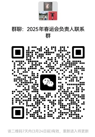 报名具体方式在微信群通知。各参赛单位确定一名负责人全程负责本单位的运动会人员组织、报名、管理、通知等事宜。请各参赛单位报名负责人扫码加入微信群。扫码时间截止:2025年3月24日17:00